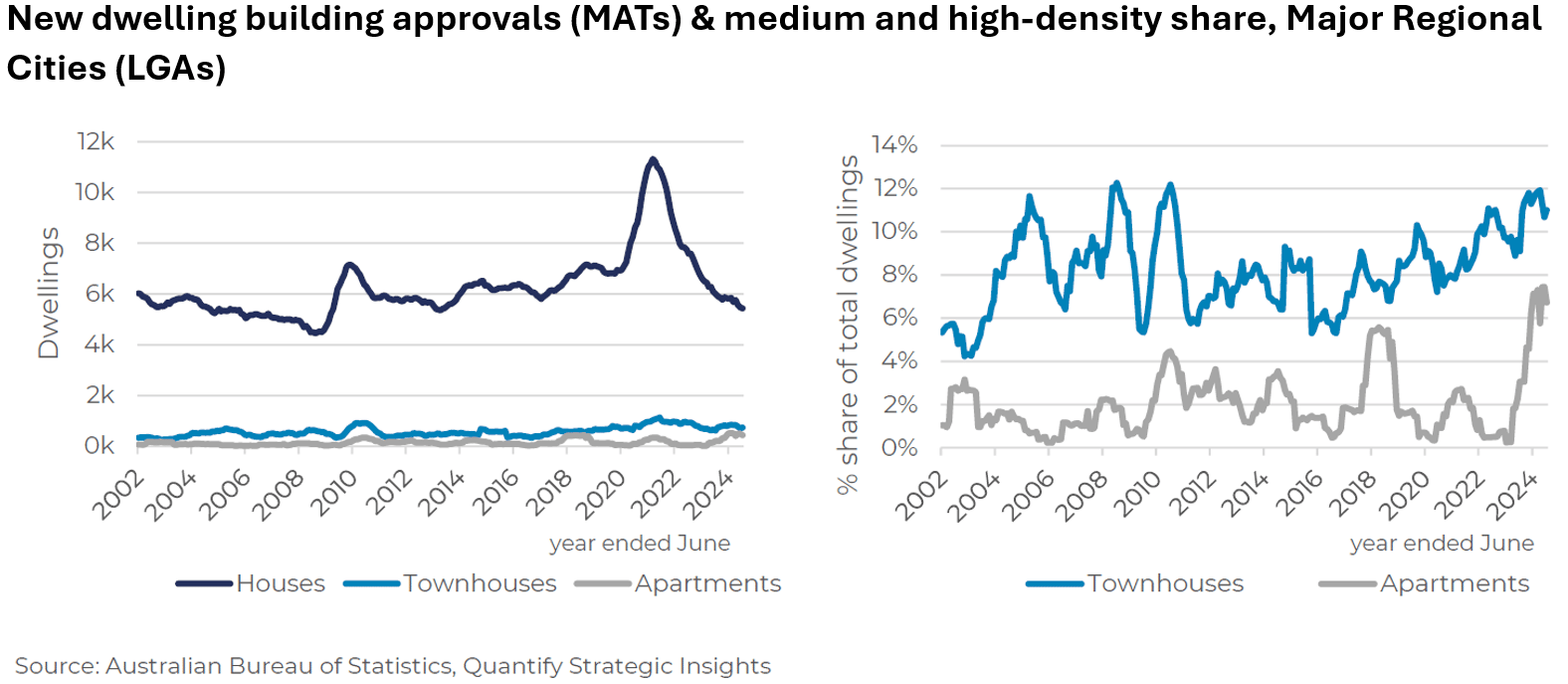 Our feasibility analysis for apartments and townhouses in regional cities being used to explain why higher-density infill has been so low (see below) and so difficult to deliver under current cost and price settings, and why planning and zoning reforms, streamlined approvals and targeted incentives are needed.
